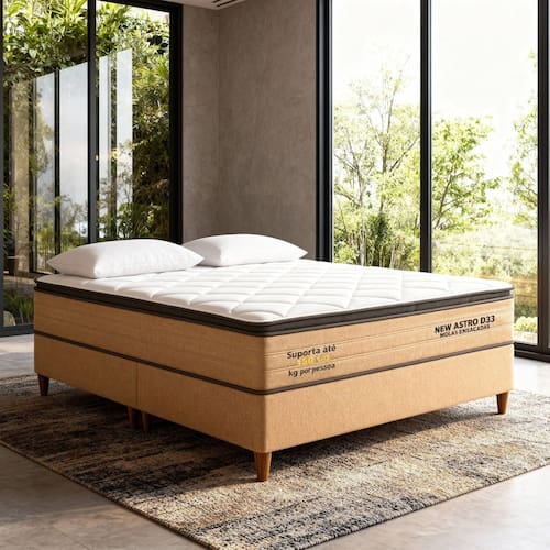 .Camada estrutural em EPS Produto Montado: Não Abertura para Ventilação: Não Acompanha Cama Auxiliar: Não Acompanha Colchão: Sim Altura da Base Box (Sem o Colchão): 42 cm Altura do Colchão (Sem a Base Box): 30 cm Altura Máxima dos Pés: 12.0000 Ambiente Principal: Quarto Antiácaro: Sim Antialérgico: Sim Antifungo: Sim Bicama: Não Cantoneiras: Sim codigo_ean: 7900288280190 Conjugado: Não Cor: Laranja/Branco Cor do Produto: Laranja/Branco Espessura da Mola: 2 mm Informações Complementares: Girar o produto a cada 30 dias Itens Inclusos: 2 Bases Box e 1 Colchão Linha ou Coleção: New Astro/Luxo Manual de Montagem e Instalação: https://product-hub-prd.madeiramadeira.com.br/207167100/documents/b465afac-c73b-421c-bf44-7ba0b49d94bc3306551667317619160698937.pdf Marca: Móveis Bom Pastor Material dos Pés: Plástico Molas por m²: 176 Necessita Montagem: Não Nível de Conforto: Firme Origem do Produto: Nacional Peso: 90 kg Pillow: Pillow Top Possui Baú: Não Possui Pillow: Sim Precisa virar: Sim Recomendações de Uso, Manutenção e Limpeza: Não usar produto químico, limpar com apenas pano limpo úmido. Revestimento da Base Box: Veludo Tamanho: King Tamanho de Colchão: King Tipo de Cama Box: Base Box Tipo do Colchão: Mola