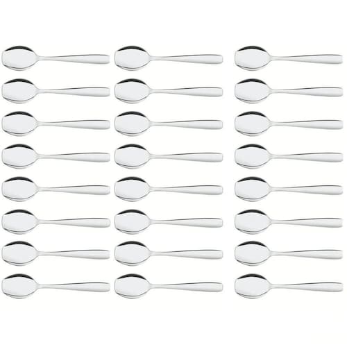 Garantia: 90 dias / Peso total: 384g / Cor predominante: inox / Referência: 7798139224352; Dimensões de cada colher: 12,8cm (C) x 3cm (L) x 1,5cm (A); Conteúdo: 24 colheres para sorvete; Material: aço inox.