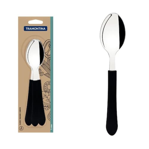 Com o conjunto de colheres de mesa Tramontina Leme com lâminas em aço inox e cabos de polipropileno preto 3 peças, você terá excelência na hora de comer sua deliciosa sopa. As peças possuem cabos em polipropileno oferecendo mais resistência e leveza no manuseio. Além disso, é produzida com lâminas em aço inox proporcionando maior durabilidade ao produto. Qualidade é com a Tramontina!