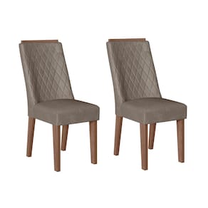 - Acabamento da Estrutura: TEXTURIZADO - Almofada do assento: Fixa - Complexidade da Montagem: Moderado - Cor: Amêndoa - Cor Predominante: Marrom Claro - Dobrável: Não - Enchimento do Assento: Espuma - Enchimento do Encosto: Espuma - Escala de Brilho: Fosca - Estrutura do Assento: MDF - Estrutura do Encosto: MDF - Garantia do Fornecedor: 03 meses - Giratória: Não - Itens Inclusos: 2 Cadeiras e Manual de Montagem. - Linha ou Coleção: Romênia - Material da Base: MDF - Material da Estrutura: MDF - Necessita Montagem: Sim - Origem do Produto: Nacional - Peso: 9,655kg cada - Possui Apoio para Braços: Não - Possui Apoio Para os Pés: Não - Possui Rodízio: Não - Revestimento do Assento: Suede - Revestimento do Encosto: Suede - Sistema de Montagem: Parafusos e Porca cilíndrica - Suporta Até (kg): 120 kg - Tipo de Assento: Fixo - Tipo de Encosto: Fixo