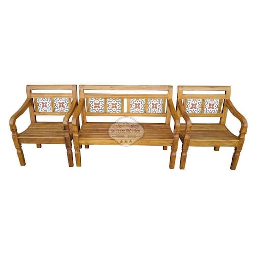 O Conjunto com 1 Banco e 2 Poltronas em Madeira de Demolição é para você que procura uma peça bonita e campestre. Altamente resistente e durável, é um item em estilo rústico com detalhes em ladrilhos hidráulicos, proporcionando elegância e um diferencial ao seu ambiente. A peça é produzida em madeira de demolição com acabamento em verniz, dando mais resistência e durabilidade no produto. Deixe sua casa ainda mais bonita e sofisticada com o Conjunto com 1 Banco e 2 Poltronas da Sudeste Rústico.