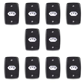 Com design retro esse conjunto permite a conexão dos aparelhos e dispositivos à rede elétrica em diversos ambientes residenciais, comerciais ou industriais. As tomadas são fundamentais para o uso seguro e prático da eletricidade em nosso dia a dia. Nossas placas são produzidos em ABS e com tratamento anti-UV garantindo a cor e o brilho por muito mais tempo. Altura do Conjunto: 0 cm Ambiente: null Ambiente Principal: Sala de Estar Cor: Preto Cor Predominante: Preto Garantia do Fornecedor: 5 anos Informação Complementar: 10x Conjunto com 1 Tomada 2p+t 20A 250v com Placa 4x2