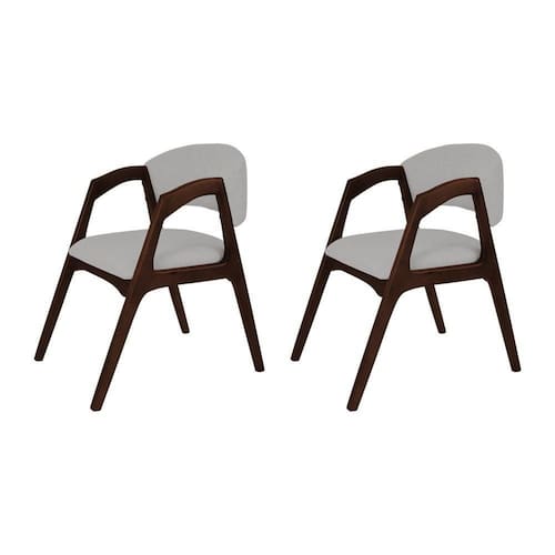 AS IMAGENS SÃO MERAMENTE ILUSTRATIVAS E PODEM SOFRER VARIAÇÕES DE COR E PEQUENOS DETALHES DE ACORDO COM O SEU MONITOR, ILUMINAÇÃO DO AMBIENTE E ATÉ MESMO A SUA PERCEPÇÃO VISUAL.Conjunto com 2 Cadeiras de Jantar Estofada Gabriela Castanho Linho Cinza Prata