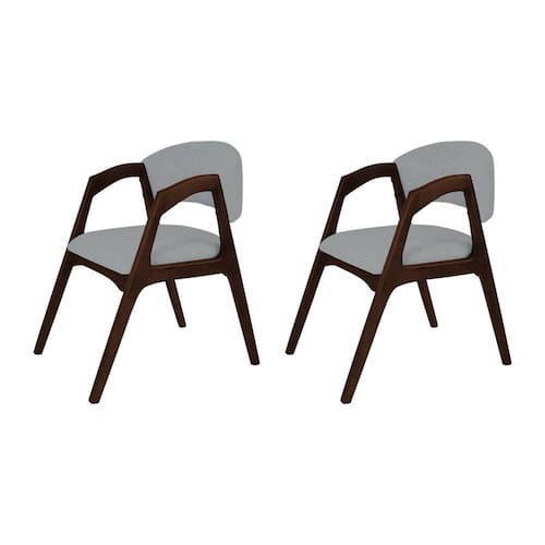AS IMAGENS SÃO MERAMENTE ILUSTRATIVAS E PODEM SOFRER VARIAÇÕES DE COR E PEQUENOS DETALHES DE ACORDO COM O SEU MONITOR, ILUMINAÇÃO DO AMBIENTE E ATÉ MESMO A SUA PERCEPÇÃO VISUAL.Conjunto com 2 Cadeiras de Jantar Estofada Gabriela Castanho Linho Cinza