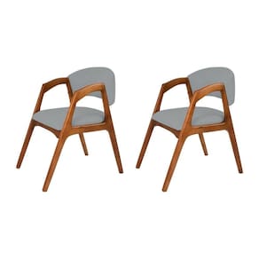 AS IMAGENS SÃO MERAMENTE ILUSTRATIVAS E PODEM SOFRER VARIAÇÕES DE COR E PEQUENOS DETALHES DE ACORDO COM O SEU MONITOR, ILUMINAÇÃO DO AMBIENTE E ATÉ MESMO A SUA PERCEPÇÃO VISUAL.Conjunto com 2 Cadeiras de Jantar Estofada Gabriela em Madeira e Mdf Cerejeira Linho Cinza