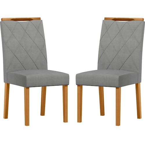 Conjunto com 2 Cadeiras de Jantar Sarah Ypê Linho Cinza Claro Ln02 - New Ceval
