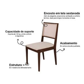 AS IMAGENS SÃO MERAMENTE ILUSTRATIVAS E PODEM SOFRER VARIAÇÕES DE COR E PEQUENOS DETALHES DE ACORDO COM O SEU MONITOR, ILUMINAÇÃO DO AMBIENTE E ATÉ MESMO A SUA PERCEPÇÃO VISUAL.Conjunto com 2 Cadeiras de Jantar Estofada Suellen Castanho Linho Bege