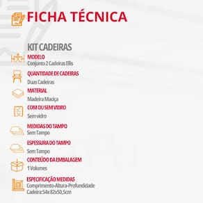 Características: Cadeiras são entregues montadas Material da Estrutura: Madeira Tipo de Acabamento: Pintura UV