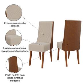 DIFERENCIAL: Cadeira com encosto bordado, tecido linho e sintético, base madeira maciça.