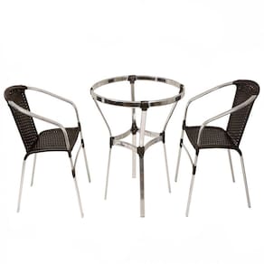 ITENS INCLUSOS:02 Cadeiras Floripa01 Mesa Ascoli (Não acompanha tampo)CARACTERÍSTICAS:- Peças produzidas em alumínio polido e revestidas em fibra sintética com proteção UV.- Nossos produtos são artesanais e podem ocorrer variações na medida de até 2cm.- As cores dos produtos podem variar de acordo com o ambiente e com a iluminação em que as fotos foram tiradas.Ideal para ambientes como: varandas, edículas, área de lazer, salas de estar, sala de jogos, churrasqueiras, sala de filme, recepção, sala de espera entre outros.ESPECIFICAÇÕES TÉCNICAS:Cadeira Floripa:- Altura total: 80 cm- Altura assento ao chão: 45 cm- Largura: 60 cm- Profundidade: 59 cm- Suporta até 180 kgMesa Ascoli:- Altura: 78 cm- Diâmetro: 80 cm- Não acompanha o tampoDÚVIDAS FREQUENTES:- QUAIS AS CORES DISPONÍVEIS?Temos 11 opções de cores disponíveis para fibra sintética e mais de 30 opções disponíveis para os estofados.- COMO ESCOLHER A COR DO PRODUTO?Após a confirmação do pagamento ficará disponível um campo de mensagens entre o vendedor e o comprador, por lá será acertado todos os detalhes referentes as cores do produto escolhido antes de ser encaminhado para a produção.- OS PRODUTOS PODEM FICAR EXPOSTOS AO TEMPO?Sim, a estrutura pode ser molhada e utilizada em áreas abertas, expostas ao sol e chuva. A fibra sintética possui filtro UV, com isso o produto pode ficar tranquilamente exposto ao tempo sem que o mesmo danifique-o.