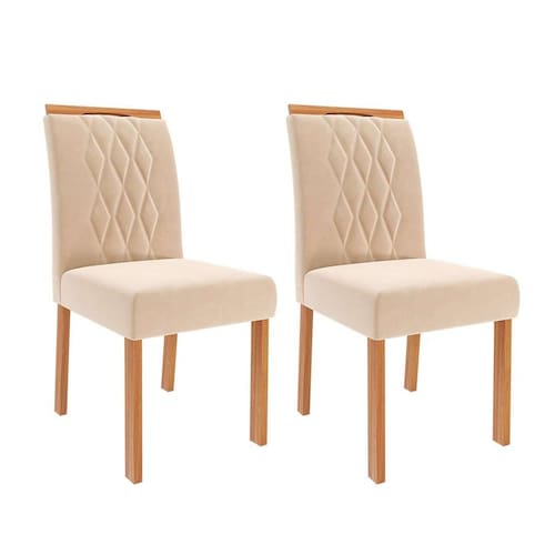 conjunto com 2 cadeiras juliana wood suede nude e madeira
