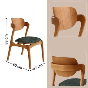 As cadeiras, produzidas em madeira macica, com um toque de solidez e elegancia. Seu assento estofado foi cuidadosamente projetado para oferecer bem-estar, enquanto a textura natural da madeira em seu encosto curvo reforca a conexao com a natureza. Afinal, nada melhor do que trazer para dentro de casa a serenidade e a beleza dos elementos naturais.