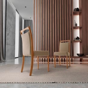 Conjunto Com 2 Cadeiras Munique Moderna Mobília Turim 07/cinam.imbuia Conjunto com 2 cadeiras Munique em Madeira Macica para Sala de Jantar Moderna Mobilia A cadeira Munique e um verdadeiro classico que adiciona uma dose de elegancia a qualquer espaco. Seu design atemporal e a personificacao do requinte, transmitindo uma sensacao de calma e tranquilidade ao ambiente. Com assento e encosto estofados, esta cadeira nao so oferece conforto excepcional, mas tambem acrescenta uma pitada de sofisticacao com sua textura macia e convidativa. Um detalhe sutil, mas encantador, sao os detalhes curvos em madeira no encosto da cadeira. Estes adicionam um toque de charme e carater ao design, complementando perfeitamente a elegancia geral da peca. E um equilibrio perfeito entre o classico e o contemporaneo, criando um visual que e ao mesmo tempo refinado e acolhedor.