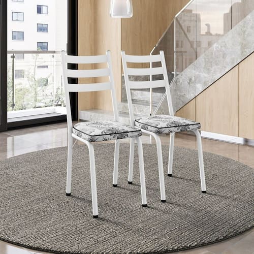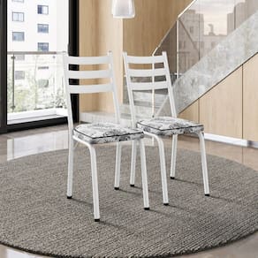Transforme suas refeições em momentos ainda mais especiais com as cadeiras NEW 118. Com um design moderno e versátil, ele combina perfeitamente com diversos estilos de decoração, proporcionando conforto e charme para o seu ambiente. Seja para cafés da manhã em família, jantares especiais ou encontros com amigos, essas cadeiras é a escolha certa para quem busca qualidade, funcionalidade e bom gosto. Acabamento: Pintura Epóxi Acabamento da Estrutura: Pintura Almofada do assento: Fixa Altura do assento até o chão: 48 cm Ambiente Principal: Cozinha codigo_ean: 7900288200648 Complexidade da Montagem: Média: pode ser montado por mais de uma pessoa e/ou necessite de maior conhecimento para montagem Cor: Branco/ Floral Cinza Cor do Produto: Branco/ Floral Cinza Cor dos Pés: Branco Dobrável: Não Enchimento do Assento: Espuma D-24 Escala de Brilho: Semi-Brilho Estrutura do Assento: MDP Estrutura do Encosto: Aço Carbono Giratória: Não Informações Complementares: cadeiras embaladas em papelão e plasticos termoeecolhivel Itens Inclusos: 2 Cadeiras, Manual de Montagem e Kit Ferragem Linha ou Coleção: Europa Manual de Montagem e Instalação: https://product-hub-prd.madeiramadeira.com.br/303254703/documents/3addfcee-623f-4571-9b1b-6c8e98a4fa5734298502152731749471145649.pdf Marca: Artefamol Material da Base: Aço Carbono Material Principal: Aço Carbono Necessita Montagem: Sim Origem do Produto: Nacional Peso: 2,36 kg Possui Apoio para Braços: Não Possui Apoio Para os Pés: Não Possui Assento/Encosto Estofados: Possui Somente o Assento Estofado Possui Espaldar: Não Possui Rodízio: Não Quantidade de Itens: 2 Recomendações de Uso, Manutenção e Limpeza: Para manter seu móvel novo por muito mais tempo, evite locais úmidos, mantenha-o distante de líquidos e de fontes de calor. Evite a exposição prolongada ao sol. Para limpá-lo com segurança utilize uma flanela seca sem produtos abrasivos e nem lustra móveis. Sistema de Montagem: Parafusos Tipo de Assento: Fixo Tipo de Encosto: Fixo