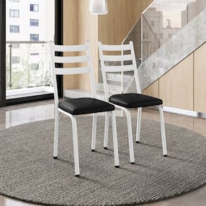 Transforme suas refeições em momentos ainda mais especiais com as cadeiras NEW 118. Com um design moderno e versátil, ele combina perfeitamente com diversos estilos de decoração, proporcionando conforto e charme para o seu ambiente. Seja para cafés da manhã em família, jantares especiais ou encontros com amigos, essas cadeiras é a escolha certa para quem busca qualidade, funcionalidade e bom gosto. Acabamento: Pintura Epóxi Acabamento da Estrutura: Pintura Almofada do assento: Fixa Altura do assento até o chão: 48 cm Ambiente Principal: Cozinha codigo_ean: 7900288199348 Complexidade da Montagem: Média: pode ser montado por mais de uma pessoa e/ou necessite de maior conhecimento para montagem Cor: Branco/ Preto Cor do Produto: Branco/ Preto Cor dos Pés: Preto Dobrável: Não Enchimento do Assento: Espuma D-24 Escala de Brilho: Semi-Brilho Estrutura do Assento: MDP Estrutura do Encosto: Aço Carbono Giratória: Não Informações Complementares: cadeiras embaladas em papelão e plasticos termoeecolhivel Itens Inclusos: 2 Cadeiras, Kit Ferragens e Manual de Montagem Linha ou Coleção: Europa Manual de Montagem e Instalação: https://product-hub-prd.madeiramadeira.com.br/227164657/documents/19ede197-00aa-4daf-82d4-c55d1bb91c3934298502152731749471145649.pdf Marca: Artefamol Material da Base: Aço Carbono Material Principal: Aço Carbono Necessita Montagem: Sim Origem do Produto: Nacional Peso: 2,36 kg Possui Apoio para Braços: Não Possui Apoio Para os Pés: Não Possui Assento/Encosto Estofados: Possui Somente o Assento Estofado Possui Espaldar: Não Possui Rodízio: Não Quantidade de Itens: 2 Recomendações de Uso, Manutenção e Limpeza: Para manter seu móvel novo por muito mais tempo, evite locais úmidos, mantenha-o distante de líquidos e de fontes de calor. Evite a exposição prolongada ao sol. Para limpá-lo com segurança utilize uma flanela seca sem produtos abrasivos e nem lustra móveis. Sistema de Montagem: Parafusos Tipo de Assento: Fixo Tipo de Encosto: Fixo
