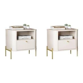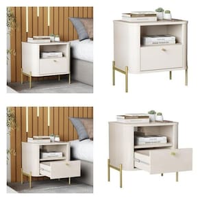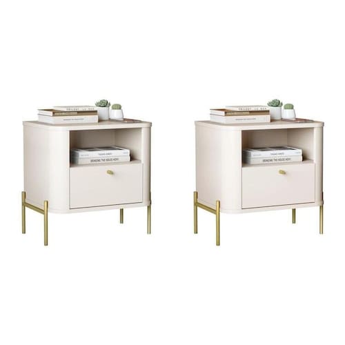 Mesa de cabeceira com os cantos arredondados exclusivos da linha, base e tampo em MDF de 1,5cm, gaveta em MDF de 1,5cm com corrediças telescópicas além dos pés e puxadores em metal com design único e sofisticado. Altura do Conjunto: 48.5 cm Ambiente: null Ambiente Principal: Quarto Cor: Off White/Dourado Informação Complementar: 2x Mesa de Cabeceira Curva 1 Gaveta e 1 Nicho Pés e Puxadores em Metal 45cm Tucupí OffWhite/Dourado Largura: 45 cm Altura: 48,5 cm Peso: 10,1 kg Profundidade: 33 cm Necessita Montagem: Sim