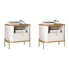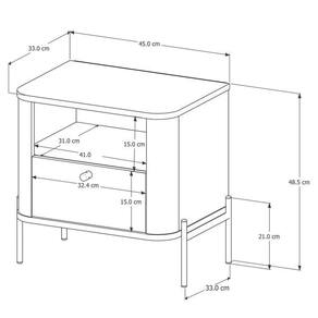 Mesa de cabeceira com os cantos arredondados exclusivos da linha, base e tampo em MDF de 1,5cm, gaveta em MDF de 1,5cm com corrediças telescópicas além dos pés e puxadores em metal com design único e sofisticado. Altura do Conjunto: 48.5 cm Ambiente: null Ambiente Principal: Quarto Cor: Off White/Marrom/Dourado Informação Complementar: 2x Mesa de Cabeceira Curva 1 Gaveta e 1 Nicho Pés e Puxadores em Metal 45cm Tucupí Off White/Marrom/Dourado Largura: 45 cm Altura: 48,5 cm Peso: 10,1 kg Profundidade: 33 cm Necessita Montagem: Sim