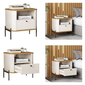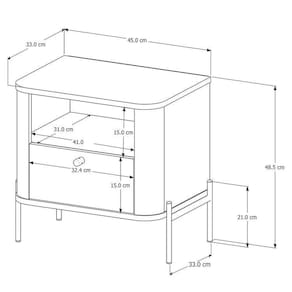 Mesa de cabeceira com os cantos arredondados exclusivos da linha, base e tampo em MDF de 1,5cm, gaveta em MDF de 1,5cm com corrediças telescópicas além dos pés e puxadores em metal com design único e sofisticado. Altura do Conjunto: 48.5 cm Ambiente: null Ambiente Principal: Quarto Cor: Off White/Marrom/Preto Informação Complementar: 2x Mesa de Cabeceira Curva 1 Gaveta e 1 Nicho Pés e Puxadores em Metal 45cm Tucupí Off White/Marrom/Preto Largura: 45 cm Altura: 48,5 cm Peso: 10,1 kg Profundidade: 33 cm Necessita Montagem: Sim