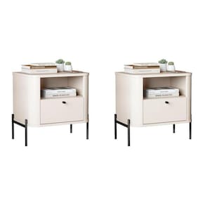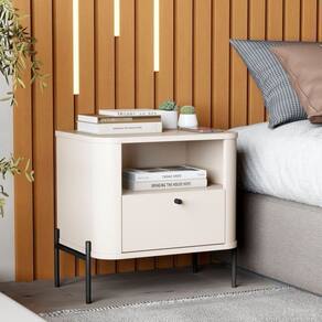 Mesa de cabeceira com os cantos arredondados exclusivos da linha, base e tampo em MDF de 1,5cm, gaveta em MDF de 1,5cm com corrediças telescópicas além dos pés e puxadores em metal com design único e sofisticado. Altura do Conjunto: 48.5 cm Ambiente: null Ambiente Principal: Quarto Cor: Off White/Preto Informação Complementar: 2x Mesa de Cabeceira Curva 1 Gaveta e 1 Nicho Pés e Puxadores em Metal 45cm Tucupí OffWhite/Preto Largura: 45 cm Altura: 48,5 cm Peso: 10,1 kg Profundidade: 33 cm Necessita Montagem: Sim