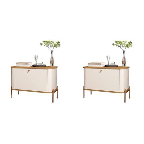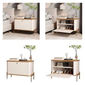 Mesa de cabeceira com os cantos arredondados exclusivos da linha, base e tampo em MDF de 15mm, porta em MDF de 15mm com dobradiças, divisória para colocar calçados além de pés e puxador em metal com design exclusivo. Altura do Conjunto: 54.5 cm Ambiente: null Ambiente Principal: Quarto Cor: Off White/Marrom/Bronze Informação Complementar: 2x Mesa de Cabeceira Curva 1 Gaveta Pés e Puxadores em Metal 76cm Tucupí Off White/Marrom/Bronze Largura: 76 cm Altura: 54,5 cm Peso: 14,3 kg Profundidade: 42 cm Necessita Montagem: Sim