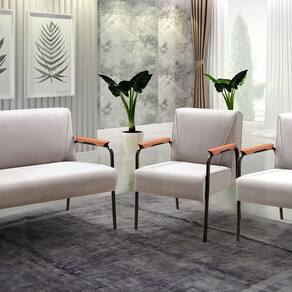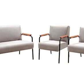 Conjunto com 2 Poltronas e Namoradeira Decorativa Jade Sala de Estar Cinza Capuccino