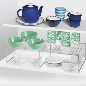 Conjunto com 2 Prateleiras Extensíveis Arthi - Aço Cromado O Conjunto com 2 Prateleiras Extensíveis da Arthi é a solução ideal para dobrar o espaço vertical útil dentro de armários de cozinha, despensas ou balcões. Seu design permite ajustar a largura, maximizando a organização e o acesso a louças, potes ou alimentos. Características Físicas e Funcionais: Funcionalidade Extensível: O comprimento das prateleiras é ajustável, permitindo que você adapte o tamanho do suporte ao espaço exato do seu armário, aproveitando cada centímetro. Organização Vertical: Cria um segundo andar de armazenamento, otimizando o espaço entre prateleiras fixas. Kit com 2 Peças: O conjunto oferece duas unidades (CJ C/2), ideal para organizar diferentes seções do mesmo armário ou áreas distintas. Design de Apoio: Não requer furos ou instalação; as prateleiras são estáveis e podem ser reposicionadas conforme a necessidade. Material Premium: Fabricado em Aço Cromado, conferindo durabilidade, resistência e acabamento estético que resiste ao uso constante. Marca: Arthi (Ref. 1855). Especificações Técnicas: Contém: 2 Unidades (Conjunto) Funcionalidade: Extensível (Largura Ajustável) Dimensões (Cada Prateleira - Fechada/Básica): Comprimento 57 X Largura 26,5 X Altura 14 cm Material: Aço Cromado
