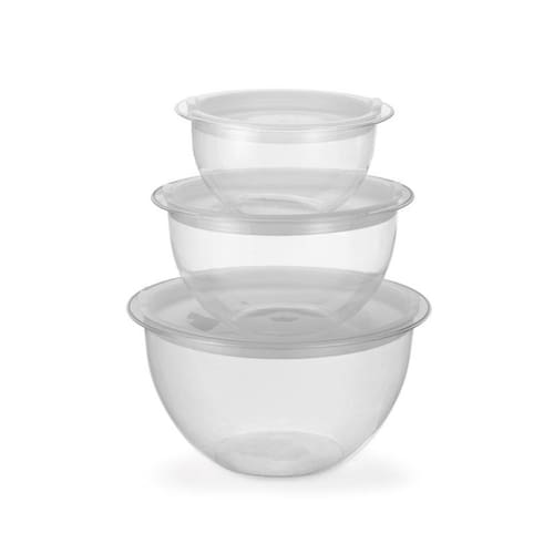 Conjunto Com 3 Bowls Com Tampa Hermética - Injeplastec Com tampa hermética, estes bowls são ideais para preparar e conservar alimentos. Este conjunto contém: 1 Bowl - 1,1l Medidas Altura: 9,5cm Diâmetro: 19,2cm 1 Bowl - 2,2l Medidas Altura: 12cm Diâmetro: 23cm 1 Bowl - 4l Medidas Altura: 14,3cm Diâmetro: 27cm Composição Polipropileno Poliestireno Ean: 7898036702110