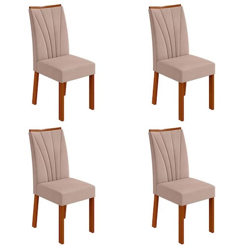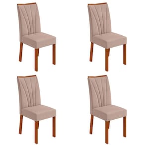 Que tal o Conjunto com 4 Cadeiras Apogeu? Sua sala de jantar dos sonhos está a um Conjunto Apogeu de distância! Com 4 cadeiras, o kit tem o bem-estar perfeito para o dia a dia, graças ao assento e ao encosto estofados em espuma e revestidos em tecido de toque agradável - a estrutura clássica ainda ajuda na receptividade, pois recebe bem o corpo. Por falar em clássico, a cor neutra e o amadeirado se unem num combo primoroso para encher de sofisticação sua casa - notou o detalhe na parte superior do encosto? Além de embelezar o ambiente, ele auxilia a puxar e recolher as cadeiras ;) Marca: Não Informado