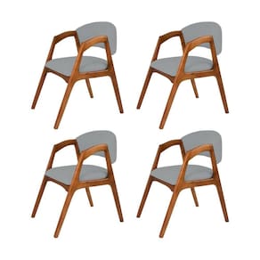 AS IMAGENS SÃO MERAMENTE ILUSTRATIVAS E PODEM SOFRER VARIAÇÕES DE COR E PEQUENOS DETALHES DE ACORDO COM O SEU MONITOR, ILUMINAÇÃO DO AMBIENTE E ATÉ MESMO A SUA PERCEPÇÃO VISUAL.Conjunto com 4 Cadeiras de Jantar Estofada Gabriela Cerejeira Linho Cinza