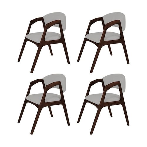 AS IMAGENS SÃO MERAMENTE ILUSTRATIVAS E PODEM SOFRER VARIAÇÕES DE COR E PEQUENOS DETALHES DE ACORDO COM O SEU MONITOR, ILUMINAÇÃO DO AMBIENTE E ATÉ MESMO A SUA PERCEPÇÃO VISUAL.Conjunto com 4 Cadeiras de Jantar Estofada Gabriela em Madeira e Mdf Castanho Linho Cinza Prata