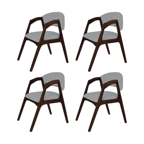 Conjunto com 4 Cadeiras de Jantar Estofada Gabriela em Madeira e Mdf Castanho Linho Cinza