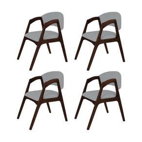 AS IMAGENS SÃO MERAMENTE ILUSTRATIVAS E PODEM SOFRER VARIAÇÕES DE COR E PEQUENOS DETALHES DE ACORDO COM O SEU MONITOR, ILUMINAÇÃO DO AMBIENTE E ATÉ MESMO A SUA PERCEPÇÃO VISUAL.Conjunto com 4 Cadeiras de Jantar Estofada Gabriela em Madeira e Mdf Castanho Linho Cinza