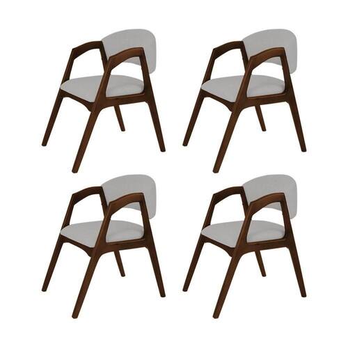 AS IMAGENS SÃO MERAMENTE ILUSTRATIVAS E PODEM SOFRER VARIAÇÕES DE COR E PEQUENOS DETALHES DE ACORDO COM O SEU MONITOR, ILUMINAÇÃO DO AMBIENTE E ATÉ MESMO A SUA PERCEPÇÃO VISUAL.Conjunto com 4 Cadeiras de Jantar Estofada Gabriela Mel Linho Cinza Prata