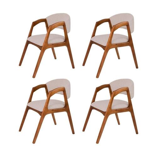 AS IMAGENS SÃO MERAMENTE ILUSTRATIVAS E PODEM SOFRER VARIAÇÕES DE COR E PEQUENOS DETALHES DE ACORDO COM O SEU MONITOR, ILUMINAÇÃO DO AMBIENTE E ATÉ MESMO A SUA PERCEPÇÃO VISUAL.Conjunto com 4 Cadeiras de Jantar Gabriela em Madeira e Mdf Cerejeira Linho Bege