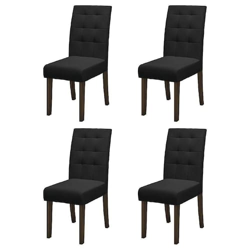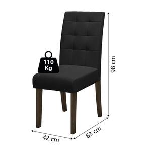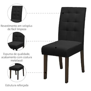 MEDIDAS:: [ A ] = 98 cm [ L ] = 42 cm [ P ] = 63 cm | PESO CADEIRA:: 7,50 KG | PESO SUPORTADO CADEIRA:: 110 kg | MODELO:: DUBAI | MARCA:: Dobuê | COR DA CADEIRA:: Estrutura: Castanho / Assento: Preto | ESTRUTURA:: MDF 25 mm | ACABAMENTO:: Pintura UV | TECIDO DA CADEIRA:: Veloplus | REVESTIMENTO INTERIOR CADEIRA:: Espuma D20 assento e D13 Encosto | SAPATAS:: Plásticas | DIFERENCIAL:: Acabamento costura matelassê | ITENS INCLUSOS:: 4 cadeiras | GARANTIA:: 3 meses pelo fabricante Cor: Cas/PtoTex