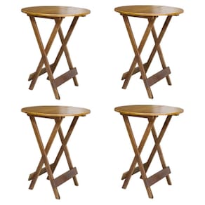 Conjunto com 4 Mesas Bistrô Dobrável em Madeira Maciça - Caramelo - Marrom