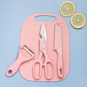 Especificações: - Material: Plástico e Aço Inox - Medida Tesoura: 20,5cm x 7,5cm - Medida Descascador: 11,5cm x 7,5cm - Medida Faca: 20cm x 2,5cm - Medida Tábua de Corte: 25cm x 18,5cm - Livre de BPA - Lâminas afiadas em aço inox para maior performance - Pegas ergonômicas e confortáveis - Tábua resistente, fácil de lavar - Ideal para cortes, descascas e preparo diário - Cor: Rosa ===================================== Devido à diferença entre monitores e iluminação diferentes, pode haver variação na tonalidade apresentada no anúncio. Medidas muito aproximadas. Marca: Não Informado Ean: 6013400053594