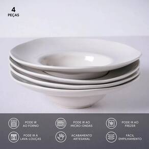 Contém 4 pratos para massas cor predominante off-white