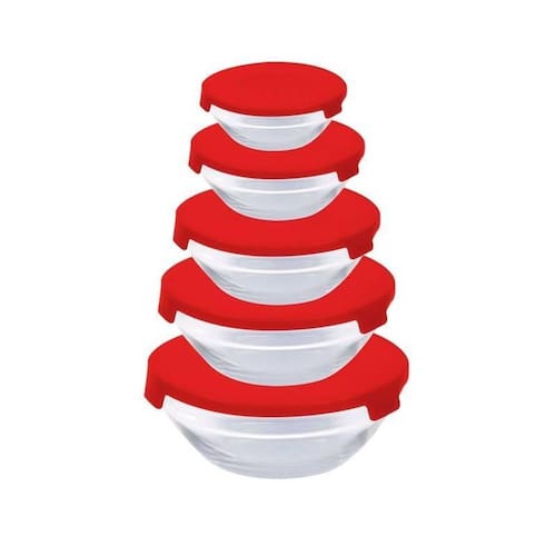 Conjunto com 5 Potes Redondo de Vidro Com Tampa Vermelha Conjunto com 5 Potes Redondo de Vidro Com Tampa Vermelha ===================================== Produzidos em vidro transparente resistente, os potes não retêm odores nem sabores, além de permitirem fácil visualização do conteúdo.