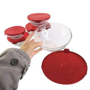 Conjunto de Potes com 5 Potes Redondos de Vidro para Armazenar Alimentos Material Vidro e Plástico Empilháveis Vermelho