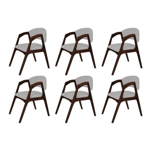 AS IMAGENS SÃO MERAMENTE ILUSTRATIVAS E PODEM SOFRER VARIAÇÕES DE COR E PEQUENOS DETALHES DE ACORDO COM O SEU MONITOR, ILUMINAÇÃO DO AMBIENTE E ATÉ MESMO A SUA PERCEPÇÃO VISUAL.Conjunto com 6 Cadeiras de Jantar Estofada Gabriela Castanho Linho Cinza Prata