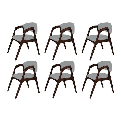 AS IMAGENS SÃO MERAMENTE ILUSTRATIVAS E PODEM SOFRER VARIAÇÕES DE COR E PEQUENOS DETALHES DE ACORDO COM O SEU MONITOR, ILUMINAÇÃO DO AMBIENTE E ATÉ MESMO A SUA PERCEPÇÃO VISUAL.Conjunto com 6 Cadeiras de Jantar Estofada Gabriela Castanho Linho Cinza