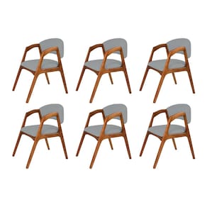 Conjunto com 6 Cadeiras de Jantar Estofada Gabriela em Madeira e Mdf Cerejeira Linho Cinza
