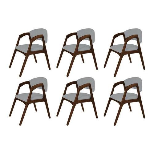 AS IMAGENS SÃO MERAMENTE ILUSTRATIVAS E PODEM SOFRER VARIAÇÕES DE COR E PEQUENOS DETALHES DE ACORDO COM O SEU MONITOR, ILUMINAÇÃO DO AMBIENTE E ATÉ MESMO A SUA PERCEPÇÃO VISUAL.Conjunto com 6 Cadeiras de Jantar Estofada Gabriela Mel Linho Cinza