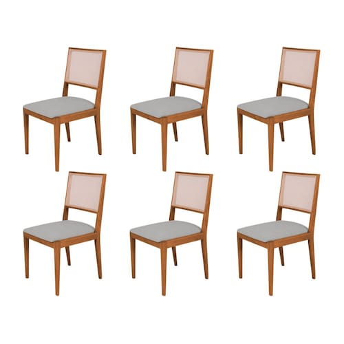 Conjunto com 6 Cadeiras de Jantar Estofada Suellen Cerejeira Linho Cinza Prata