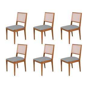Conjunto com 6 Cadeiras de Jantar Estofada Suellen Cerejeira Linho Cinza