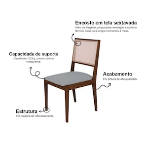 O assento conta com espuma de alta densidade D26, que oferece firmeza e conforto na medida certa, além de suportar até 120 kg com total segurança. O design com linhas retas e acabamento refinado permite que a cadeira se adapte facilmente a diferentes estilos de decoração, do clássico ao contemporâneo.