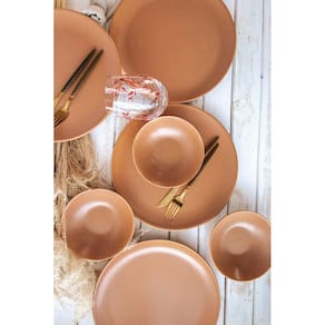 Contendo 6 pratos fundos coup com 25 cm de diâmetro.