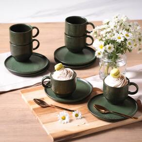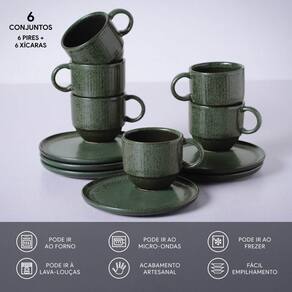 Conjunto com 6 Xícaras de Chá Empilhável com 6 Pires Linhas Greenery 230ml