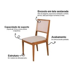 AS IMAGENS SÃO MERAMENTE ILUSTRATIVAS E PODEM SOFRER VARIAÇÕES DE COR E PEQUENOS DETALHES DE ACORDO COM O SEU MONITOR, ILUMINAÇÃO DO AMBIENTE E ATÉ MESMO A SUA PERCEPÇÃO VISUAL.Conjunto com 8 Cadeiras de Jantar Estofada Suellen Cerejeira Linho Bege